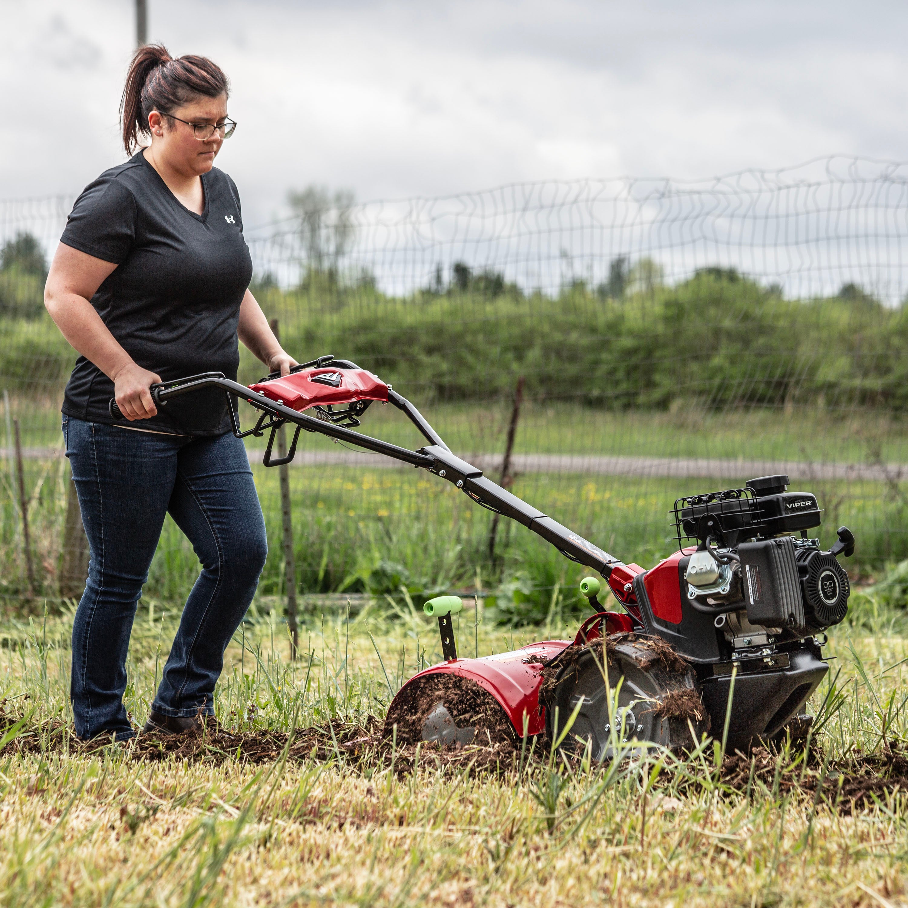 - 17" tilling width and tills up to a depth of 11”